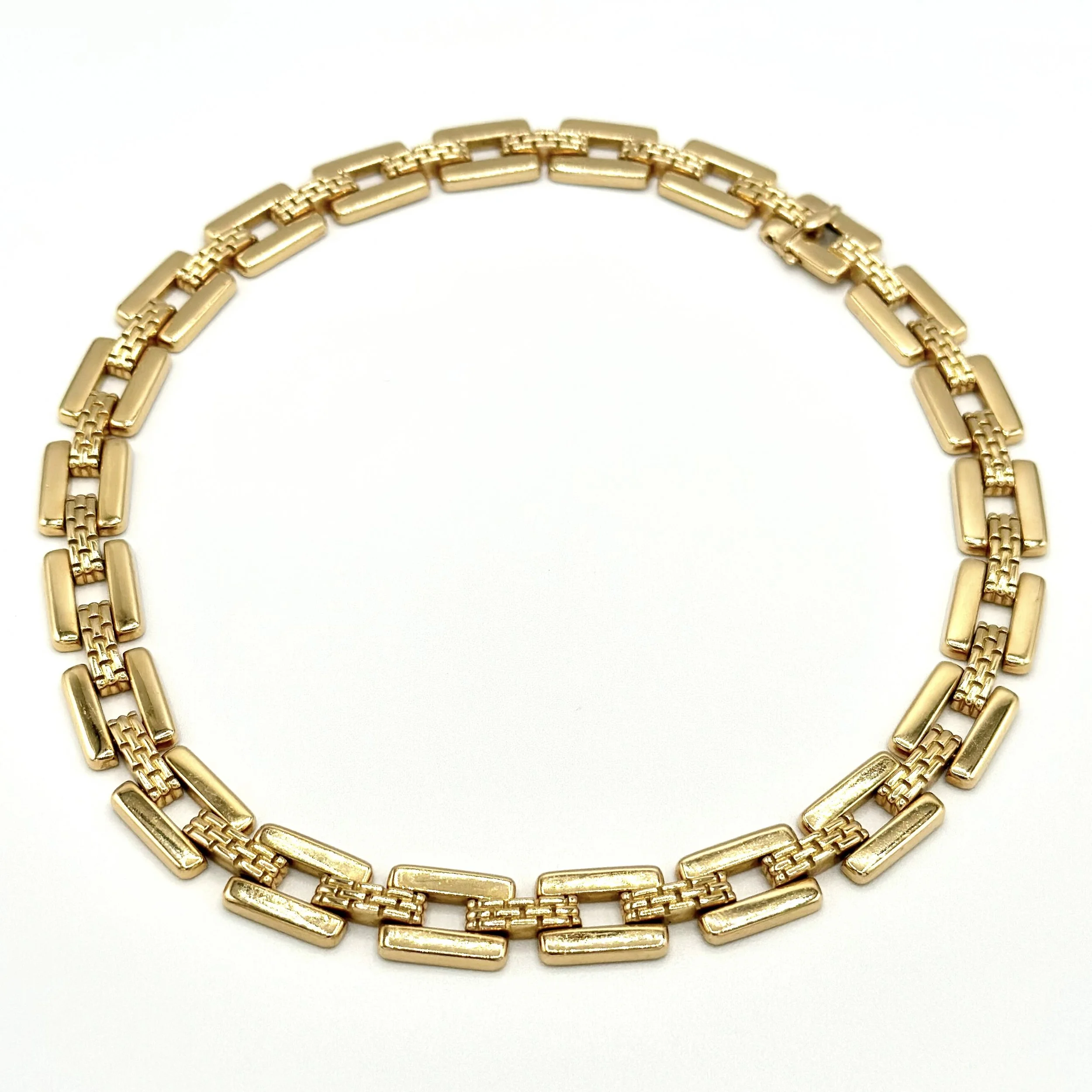 A bold, Cartier collar from 1989. The link construction is unmistakably Cartier and offers weight with everyday attitude.