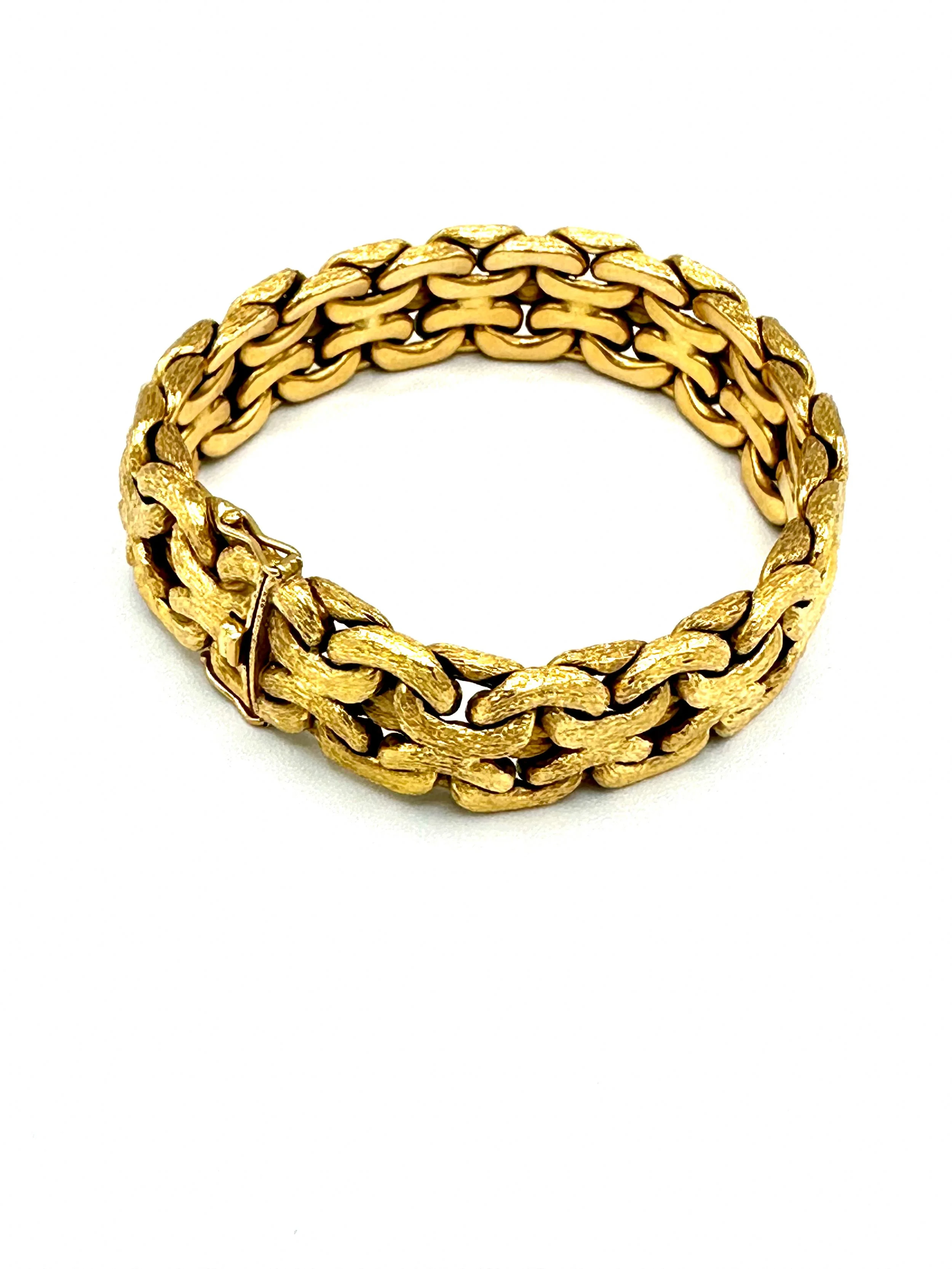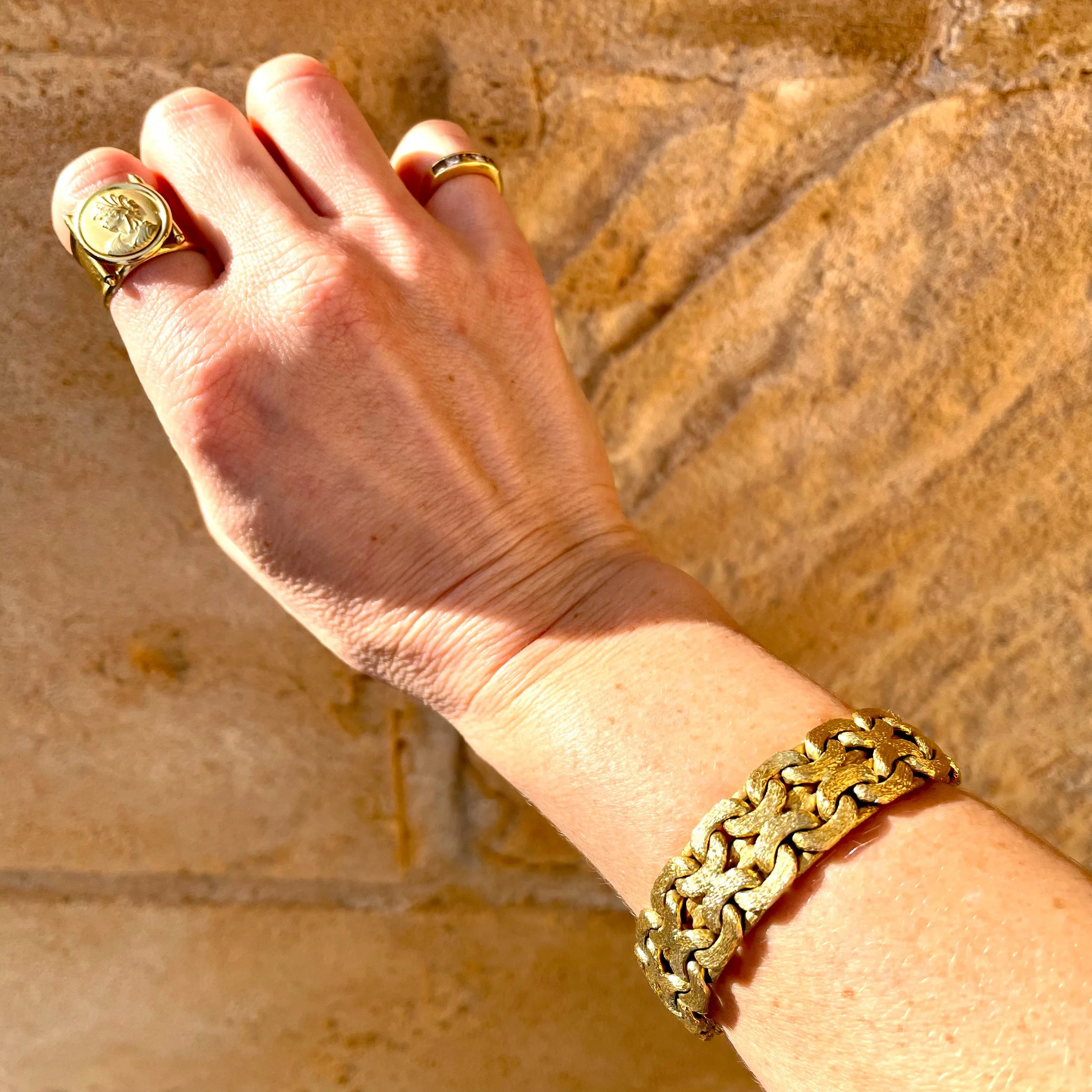 Textured, weighty, and utterly effortless. This vintage European bracelet defines quiet luxury with a confident edge.